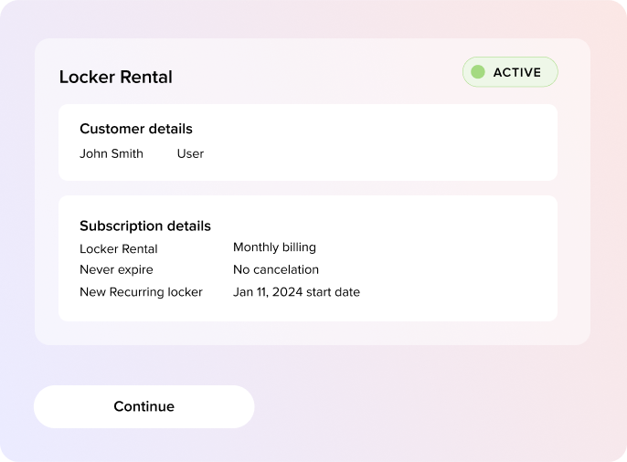 Offer subscriptions for recurring items, like gym memberships, locker rentals, or bike spot rentals, and charge recurring payments on a weekly, monthly, or yearly basis.